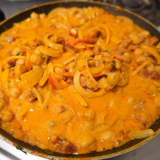 La primera vez que hice el menjunje de garbanzos y chorizo no anoté los ingredientes que usé ni las porciones, fui improvisando usando como guía mi paladar. Cuando estuve feliz con el sabor, dejé de echar cosas. Cuando quise recrearlo pensé que no me iba a quedar igual, pero se me activó la "memoria muscular" (digo yo) y dí con todos los ingredientes correctos. Estoy convencida de que es una receta que les traerá felicidad. El "guiso" de garbanzos y chorizo funciona como relleno para pastelillos, papas, o hasta pastelón. A la misma vez, si obvian el chorizo, tienen una versión vegana muy sabrosa.