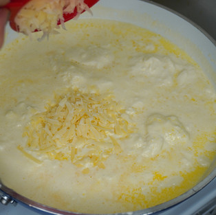 Cuando diluya el queso crema, echas el queso parmesano. Mezcla hasta integrar. Prueba y, de ser necesario, añade sal.